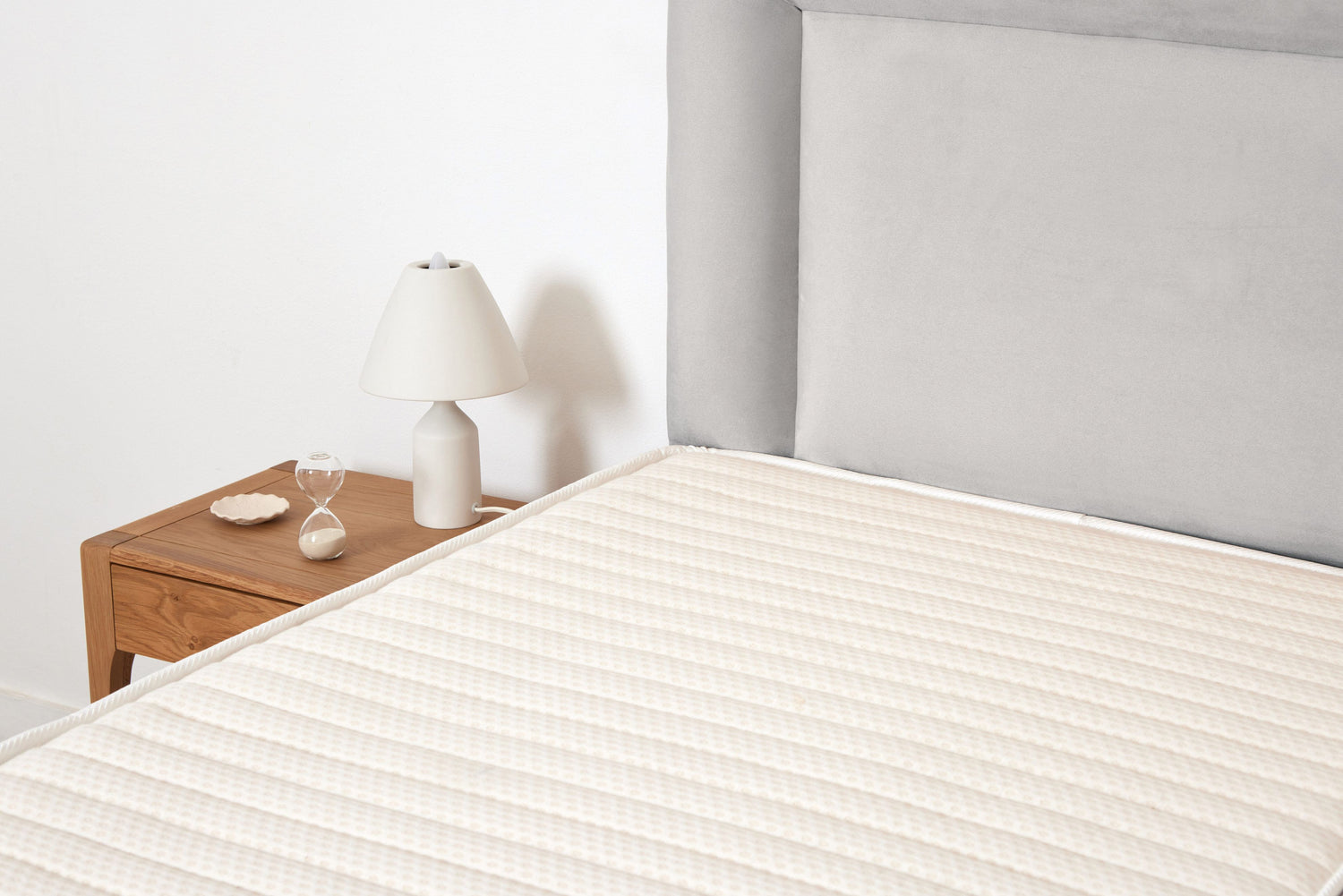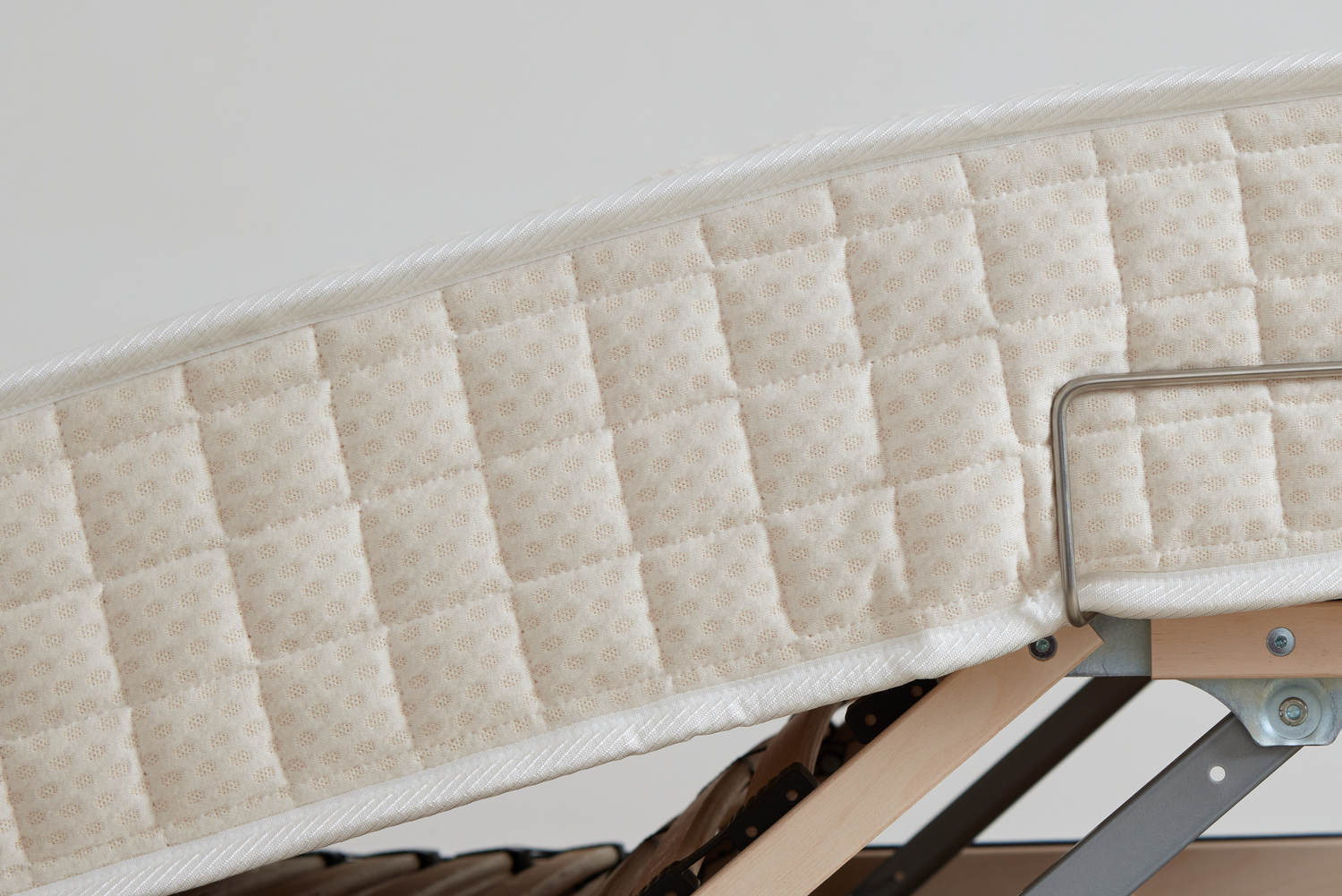 We have spent the past 30 years developing the best possible mattress for our adjustable bed frames. We know our customer, and we know what works. We make both the bed frame and mattress to order at our Co. Limerick workshop so we have the highest confidence in the superior quality of materials we use. Specially designed for the bed, the pressure-relieving mattress has a three inch layer of reactive smart foam to mould to hips and shoulders. There are no springs, and the foam block core gives support and comfort whichever position the bed is elevated to. The mattress is covered in lambswool and the finest certified organic cotton for softness.