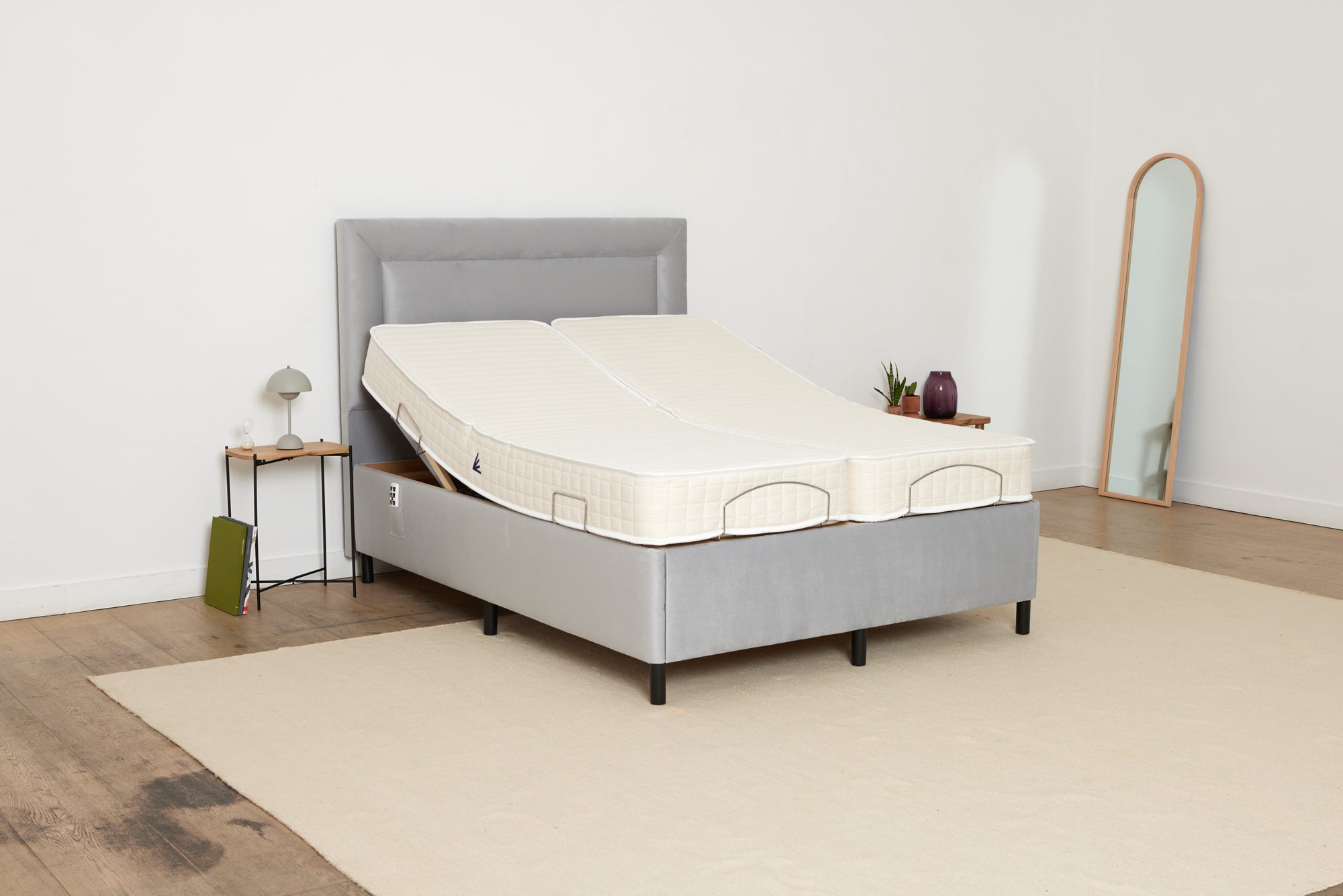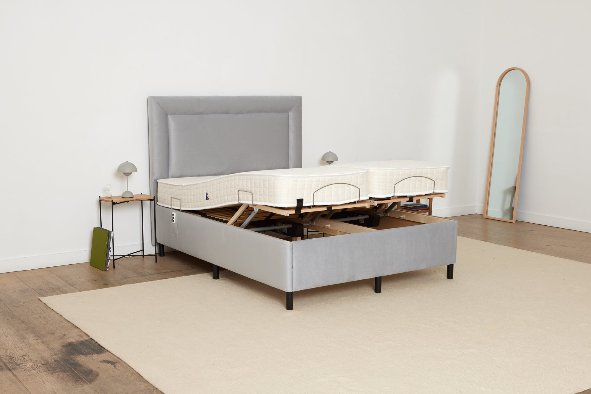 Our single bed is suitable for one person, and comes with one specially designed mattress that moves with the bed frame. Our double size and king size beds are suitable for two people sharing a bed, and come with two separate single mattresses which are dual controlled, so that you can raise the head or foot on one side, while keeping the other side flat.