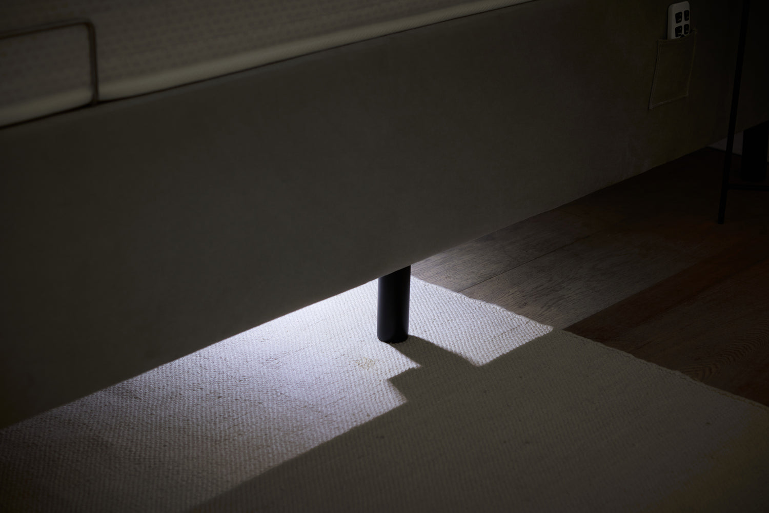 When you order one of our adjustable beds, you can choose from two leg options to best suit your needs. One is a black matt finished wooden leg with cushioned base, this sits 12cm off the ground so the bed is higher up, and it is possible to hoover underneath for example. The other option is a metallic finish durable floor glide leg with a cushioned base, this sits 4cm off the ground so the bed is lower down.