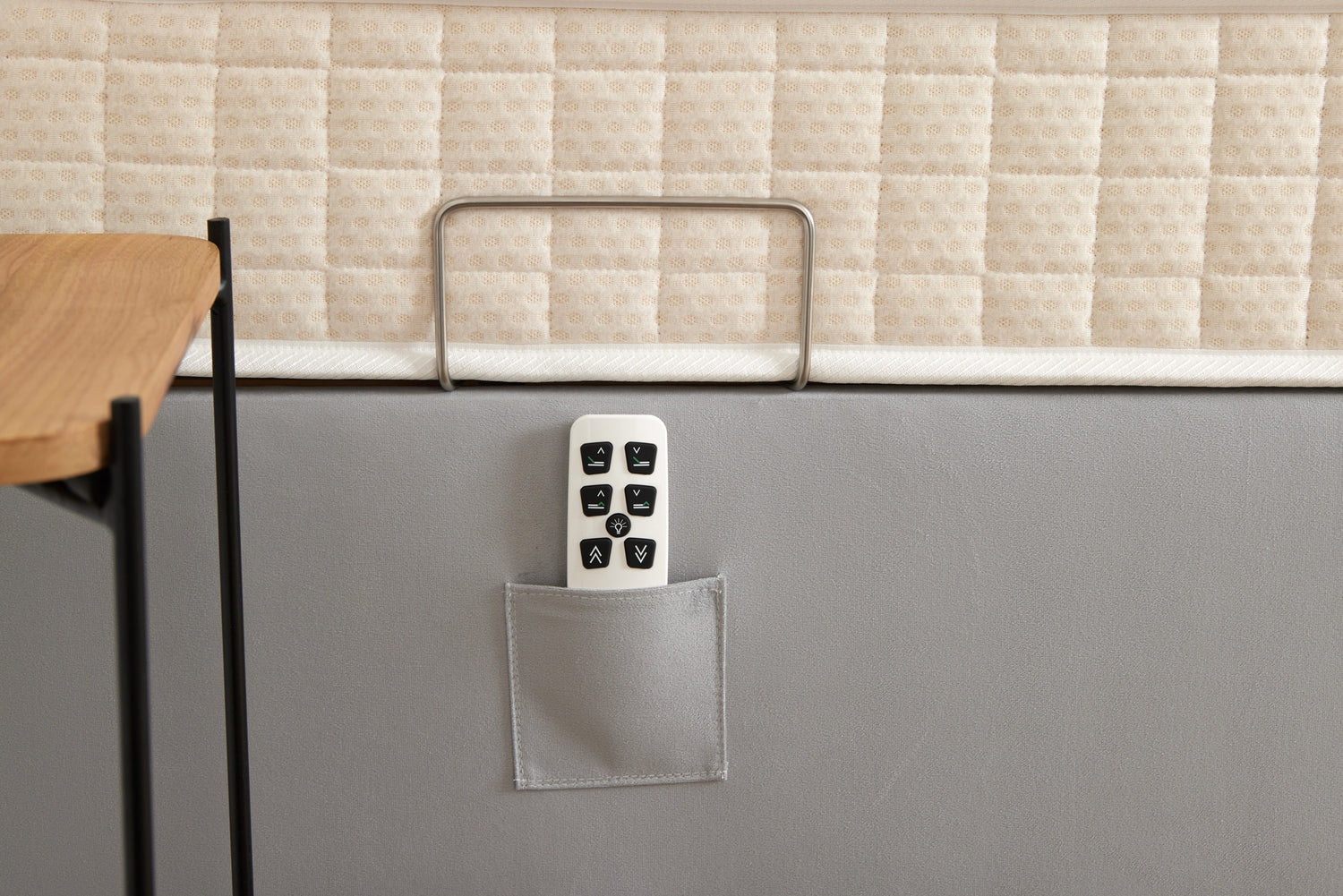 Our motorized adjustable bed comes with an easy-to-use remote for personalized positioning of the head and feet. The remote, which also controls bed lights, can be stored in a convenient pocket on the bed's side. Single beds include one remote, while double and king sizes with separate mattresses have two for dual control. During installation, our team ensures you're comfortable with using the remote. The remote has a 5-year guarantee, and spare handsets are available in case of loss, although issues are rare.