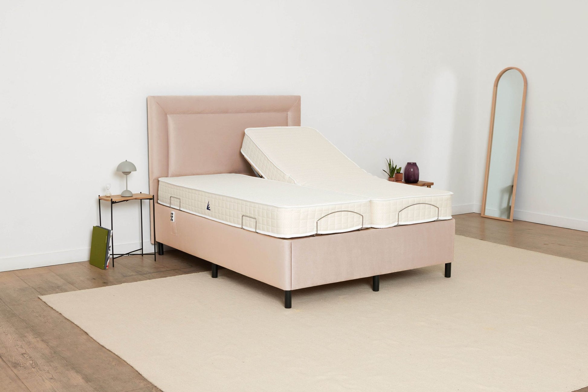Our double adjustable bed is made for two people, with two individual mattresses that are controlled separately, giving the flexibility for one person to sit up in bed, while the other can lay flat. The bed can be raised at the head and feet and is dual controlled with two easy to use remote handsets that are kept in handy pockets on either side of the bed. The specially designed foam core mattress moves with the bed and adapts to the body shape giving ultimate support. A three inch smart foam layer is reactive to relieve pressure on hips and shoulders. The bed features a gently glowing LED light on the base surrounds to guide your footing at night. Mattresses included as standard.