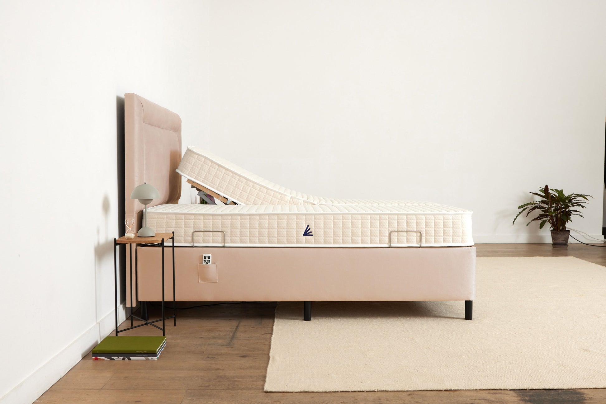Foam core mattress that moves with the bed frame. Covered in a three inch pressure-relieving smart foam layer to mould to the body. Covered in all natural, chemical free, certified organic materials which includes heat regulating lambswool for comfort and moisture wicking organic cotton for softness.