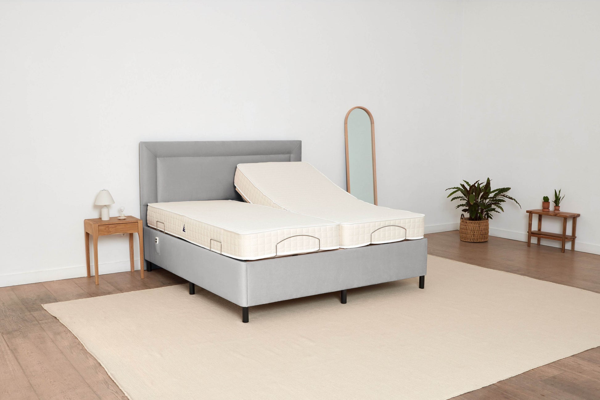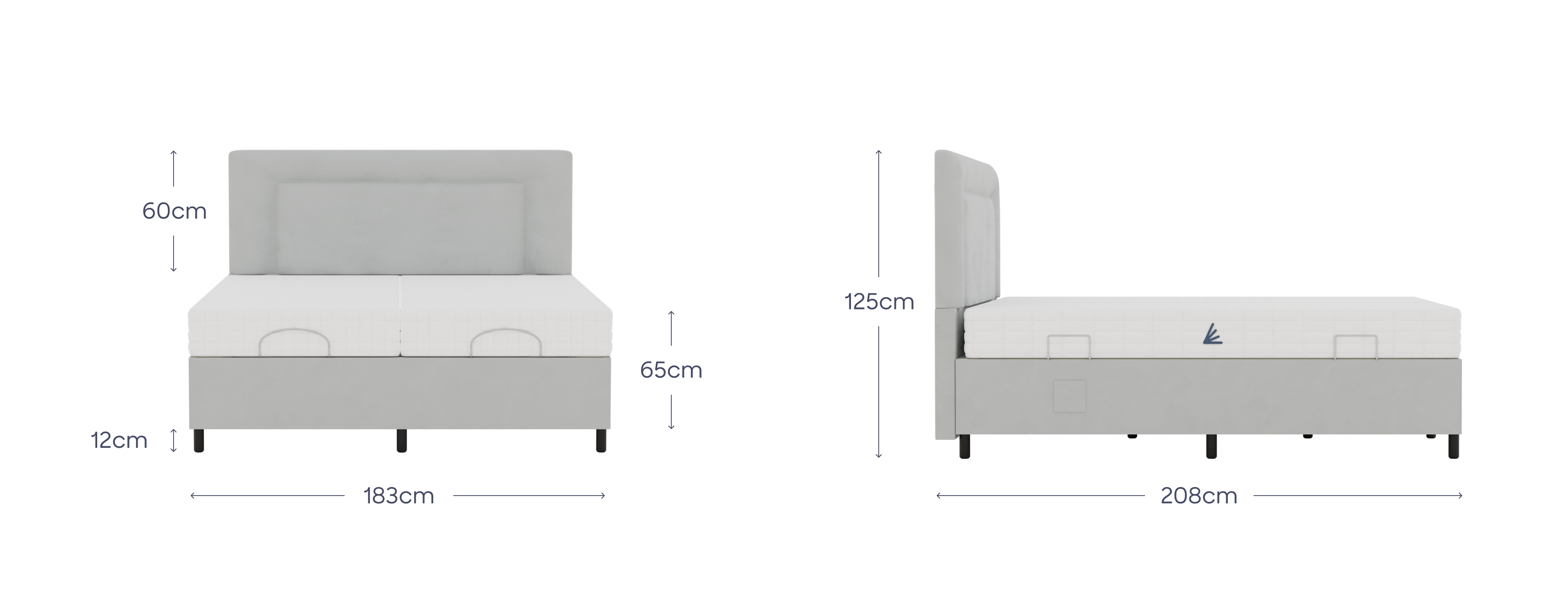 Our super king adjustable bed is a luxurious wider bed made for two people, with two individual mattresses that are controlled separately, giving the flexibility for one person to sit up in bed, while the other can lay flat. The bed can be raised at the head and feet and is dual controlled with two easy to use remote handsets that are kept in handy pockets on either side of the bed. The specially designed foam core mattresses move with the bed and adapts to the body shape giving ultimate support. A three inch smart foam layer is reactive to relieve pressure on hips and shoulders. The bed features a gently glowing LED light on the base surrounds to guide your footing at night. Mattresses included as standard.