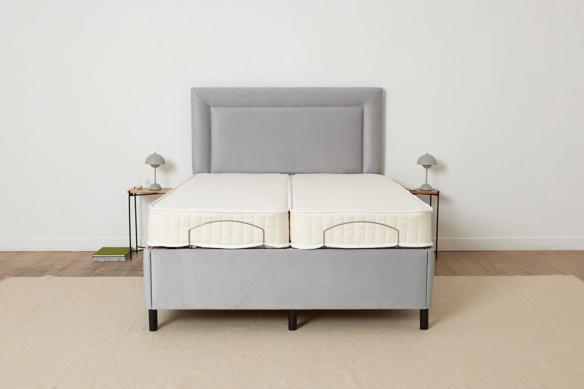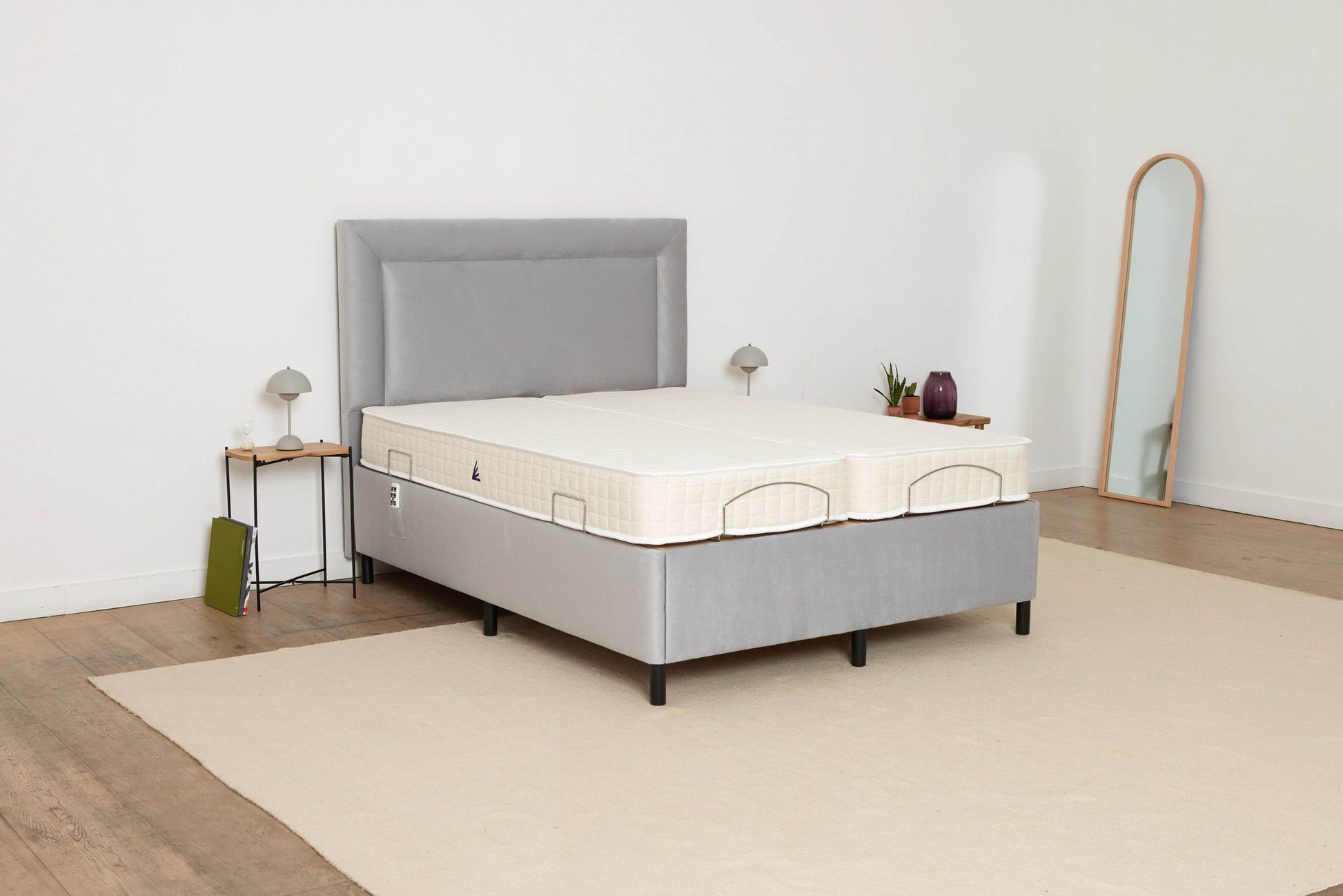 Our double adjustable bed is made for two people, with two individual mattresses that are controlled separately, giving the flexibility for one person to sit up in bed, while the other can lay flat. The bed can be raised at the head and feet and is dual controlled with two easy to use remote handsets that are kept in handy pockets on either side of the bed. The specially designed foam core mattress moves with the bed and adapts to the body shape giving ultimate support. A three inch smart foam layer is reactive to relieve pressure on hips and shoulders. The bed features a gently glowing LED light on the base surrounds to guide your footing at night. Mattresses included as standard.