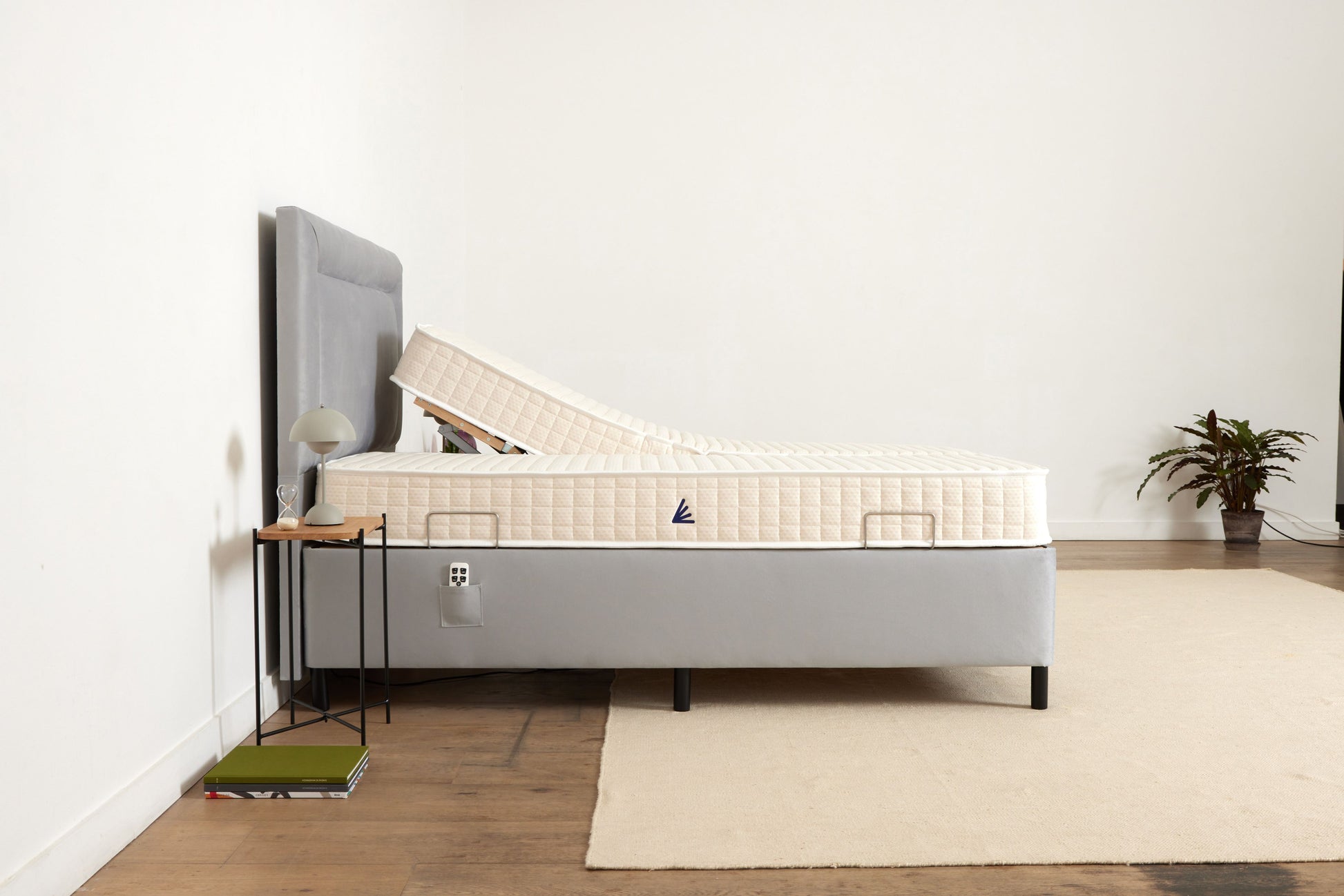 Foam core mattress that moves with the bed frame. Covered in a three inch pressure-relieving smart foam layer to mould to the body. Covered in all natural, chemical free, certified organic materials which includes heat regulating lambswool for comfort and moisture wicking organic cotton for softness.