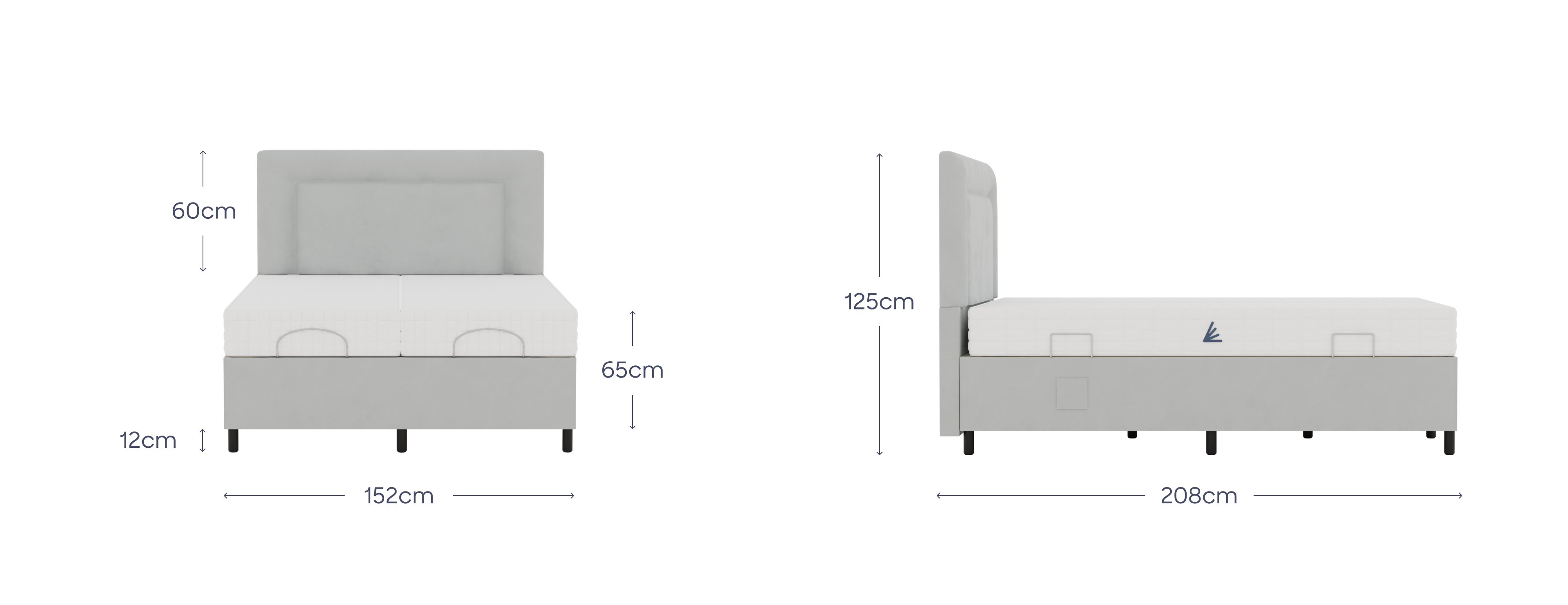 Our double adjustable bed is made for two people, with two individual mattresses that are controlled separately, giving the flexibility for one person to sit up in bed, while the other can lay flat. The bed can be raised at the head and feet and is dual controlled with two easy to use remote handsets that are kept in handy pockets on either side of the bed. The specially designed foam core mattress moves with the bed and adapts to the body shape giving ultimate support. A three inch smart foam layer is reactive to relieve pressure on hips and shoulders. The bed features a gently glowing LED light on the base surrounds to guide your footing at night. Mattresses included as standard.